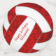 This girls' volleyball sports birthday party confetti features girly red and white volleyballs with customizable "Happy Birthday" greeting and girl's name - by katz_d_zynes