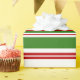 This wrapping paper design features a Christmas and holidays inspired striped pattern having colours like red, white, and green. Wrapping paper like this might be fun to use when preparing presents or gifts being given to celebrate a birthday, a wedding, an anniversary, or some other event.