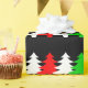 This Christmas themed design features a pattern of red, white, or green Christmas tree icons. It might be used when wrapping gifts being given to somebody in celebration of Christmas.