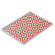 This bold red, green, and white geometric pattern is an original ornamental design perfect for Christmas. Red meanders angle around white diamonds containing small green diamonds. White zigzags provide separation between the winding crimson paths.