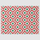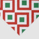 This bold red, green, and white geometric pattern is an original ornamental design perfect for Christmas. Red meanders angle around white diamonds containing small green diamonds. White zigzags provide separation between the winding crimson paths.