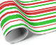 This wrapping paper design features a Christmas-themed striped pattern having colours like red, white, and green. Wrapping paper like this might be used when preparing presents being given in celebration of a birthday, a wedding, an anniversary, or some other event.