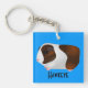 A cute little red-and-white guinea pig key chain with a customizable name or phrase across the bottom.