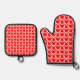 Red White Hearts Pattern Oven Mitt & Pot Holder Set