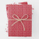 Fun and festive, this gift wrap set is the perfect way to send love to your friends and family this Valentine's Day. The design features 3 different papers: 1. white hearts on a red background, 2. red calligraphy script "love" on a white background, and 3. white calligraphy script "love" on a red background.