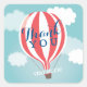 Lovely stylish Thank You Stickers, designed with an original illustration of a red and white striped hot air balloon flying high in the blue sky with white clouds.