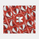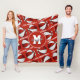 This team colours fleece blanket features stylized basketballs that have alternating red and white recolored panels - athlete name and monogram can be personalized on the large circle pendant that overlies a mirrored pattern of small basketballs and the sporty font text "I love basketball" in white stretching between the angled rows of basketballs - background is customizable red - easily delete the "I love basketball" text lines, if desired, or replace the monogram with the player's varsity letter or jersey number - by katz_d_zynes
