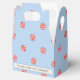 Favour box with red and white lollipop pattern on blue background