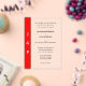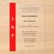 Modern minimalist wedding. Monogrammed Initials in white against red geometric border edge. Bride and Groom's Names and details in black typography. Original Design © TamiraZDesigns.