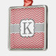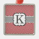 Red White Monogram Letter K Chevron Metal Ornament
