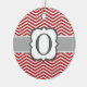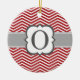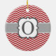 Red White Monogram Letter O Chevron Ceramic Ornament