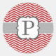 Red White Monogram Letter P Chevron Classic Round Sticker