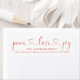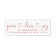 Étiquettes de retour élégant et classe pour Noël (Noël) Cartes de voeux / enveloppes de Noël. Red PEACE AIME JOY arrière - plan blanc. Lettres blanches modernes pour nom de famille et adresse. La couleur et la police de la lettre peuvent être modifiées.