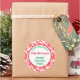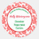 A round, custom gift sticker, baking, cookie or recipe stickers reading "From the Holiday Kitchen of" and editable text in green vintage and red script letters on a red and white holiday pattern of peppermint candies.