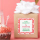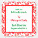 A square, custom baking, cookie or recipe stickers with red and green blackletter on a red and white holiday pattern of peppermint candies.
