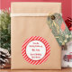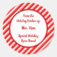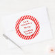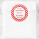 Custom baking stickers with a red script and vintage letters on a red and white striped holiday pattern.