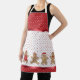 Red & White althernating / inverted polka dots from steam to seam, with red metallic faux foil print ribbon separators at each transition, and five adorable gingerbread people lined up along the bottom of this classic Christmas Apron