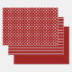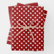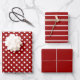 These wrapping paper sheet features one sheet that is red with white polka dots, one sheet that is red with white stripes and one sheet that is all red.
