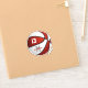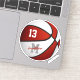 This basketball sticker for boys (or girls) features the image of a stylized basketball with red and white recolored panels and easily customizable player name, jersey number & monogram or varsity letter - by katz_d_zynes