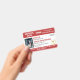 Horizontal service dog ID badge in red and white with room for a photo of the service dog and a logo. Add name, title, and registration number. Add the handler's name and contact information too.