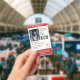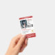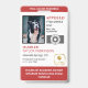 Vertical service dog ID badge in red and white with room for a photo of the service dog and two logos. Add name, title, and registration number. Add the handler's name and contact information too.