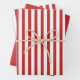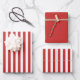 Coordinating gift wrap for all occasions. This is a simple stripes pattern in a red and white all-over print. There are two sheets with stripes and one solid red coordinating sheet.