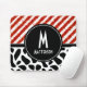 Red White Stripe Black Pattern Monogram Mouse Pad