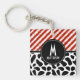 Red White Stripe Black White Pattern Monogram Keychain is trendy and stylish to add your keys. Great gift for his or hers. Personalize it with your initial and name.