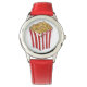 Watch features an original marker illustration of a carton of caramel popcorn.