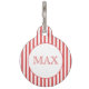 NewParkLane - Cute Pet ID tag, with a modern red & white striped pattern, with a frame for your dogs name, and phone number of mom & dad.