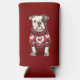 Red White Sweater with hearts Bulldog Seltzer Can Cooler