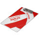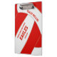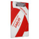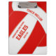 This volleyball team colours clipboard for a girl's or boy's volleyball coach features an abstractly oversized red and white volleyball upon which you can customize coach's name plus the school and mascot name and school year/season - by katz_d_zynes