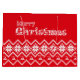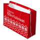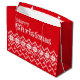 Festive large Christmas gift bag in bright red featuring a white Nordic-style, "ugly sweater" knit pattern with snowflakes, reindeer, and a "Merry Christmas" message. Perfect for wrapping holiday gifts for friends, family, and secret Santa. Great for winter themes, cozy gifts, and Christmas parties. Durable paper bag with handles.