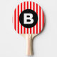 Red White Vertical Stripes Black Monogram Ping Pong Paddle