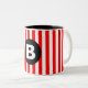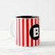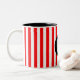 Red White Vertical Stripes Black Monogram Two-Tone Coffee Mug