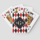 Red Wht Black Harlequin Blk Quatrefoil 3 Monogram Playing Cards
