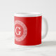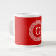 Red Wht Greek Key Rnd Frame Initial Monogram Large Coffee Mug