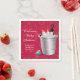 A Sip and See is designed for family and friends to meet and greet the new addition to the family. This napkin takes an offbeat, tongue in cheek look at the Sip and See and features two main beverages of the event... namely wine for the adults and milk for the baby. A wine bottle is placed in a metal-look bucket surrounded by ice and some baby bottles.The bright red background has a subtle baby-inspired pattern making this a great option for a boy or girl. Add your message and baby's name to the left. Available in alternate colours with matching products.