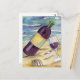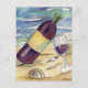 A bottle of red wine tilts against a half full wine glass on the beach. A platter of cheese is ready to be cut, as well as, a second wine is ready to be filled. Seashells are intermingled on the sand beach. Soft pastel coloured ocean waves are splashing in the background. The wine label can be personalized for your own message on a bottle! Painting rendered in watercolor. Make special red wine beach party postcards with your own text and images using the "Customize It" option for personalized holidays and special life occasions wine art gifts!