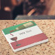 Red wine poured from bottle to glass against red, white and green striped background.