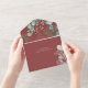 ALSO AVAILABLE WITH A QR CODE TO SCAN, NO DINNER OR DETAILS, OR WITH DINNER SELECTION OPTIONS. Celebrate your new beginning with the botanical beauty of winter. This design features a casual frame of pine, eucalyptus, and berries in shades sage, pine green, and rich vintage red on a rich red background. Elegant and perfect for the season. Created by Simply Farmhouse Press.