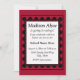 Celebrate your child's move to college with this cute dark red with black polka dots "off to college" party invitation.