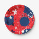 Red with Blue Splatters and Black and White Stars Paper Plate