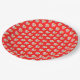 Red with small art designs on it paper plate