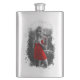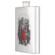 The product is a good size and came exactly as it was pictured. The lid is not attached to the flask, which could be dangerous on drunken nights... The print came out surprisingly well and looks very sharp. Would definitely recommend.