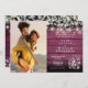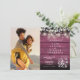 A stylish wedding invitation featuring your special photo and pretty sage and lilac leaves, string lights, mason jars and your wedding details set in elegant text on a rustic burgundy red wood background. Designed by Thisisnotme©