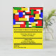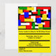 Red, Yellow, Blue and Green Blocks on a black background designed as vibrant party invitation. .