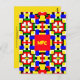 Colourful Red, Yellow, Blue and Green Geometrics postcard. Red square text box can be remove, initials can be changed, yellow back of card can be changed.