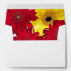 This envelope is adorned with a red and yellow Gerber daisy photograph background on the inside with three flowers on the front. Great for a special occasion.