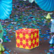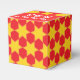 Graphic bold star patterned red and yellow gift box. Ideal for filling with birthday favours and thank yous, or for other general events. Personalise with your thanks and name on the top of the box. Design by Sarah Trett.